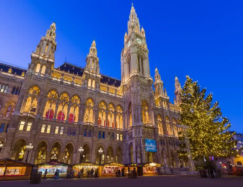 Vienna truly sparkles at Christmas, with the Rathausplatz market at the heart of the city offering a magical ice rink that winds gracefully through illuminated trees. You can glide under a canopy of fairy lights, sip on warming mulled wine, and savour seasonal treats like roasted chestnuts, gingerbread, and traditional Austrian pastries while soaking up the festive atmosphere of a winter wonderland alive with music, lights, and joyous celebrations.