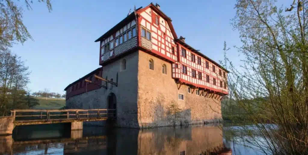 Nestled in Thurgau, Hagenwil Castle is one of the few intact water castles in Switzerland, dating back to 1264. Surrounded by a moat and set within tranquil farmland, it offers a rare glimpse into medieval life and architecture. To get there, take a train to Rorschach or Amriswil. Both stops are covered by the Swiss Travel Pass. You can then enjoy a short local bus ride or scenic walk to the castle.