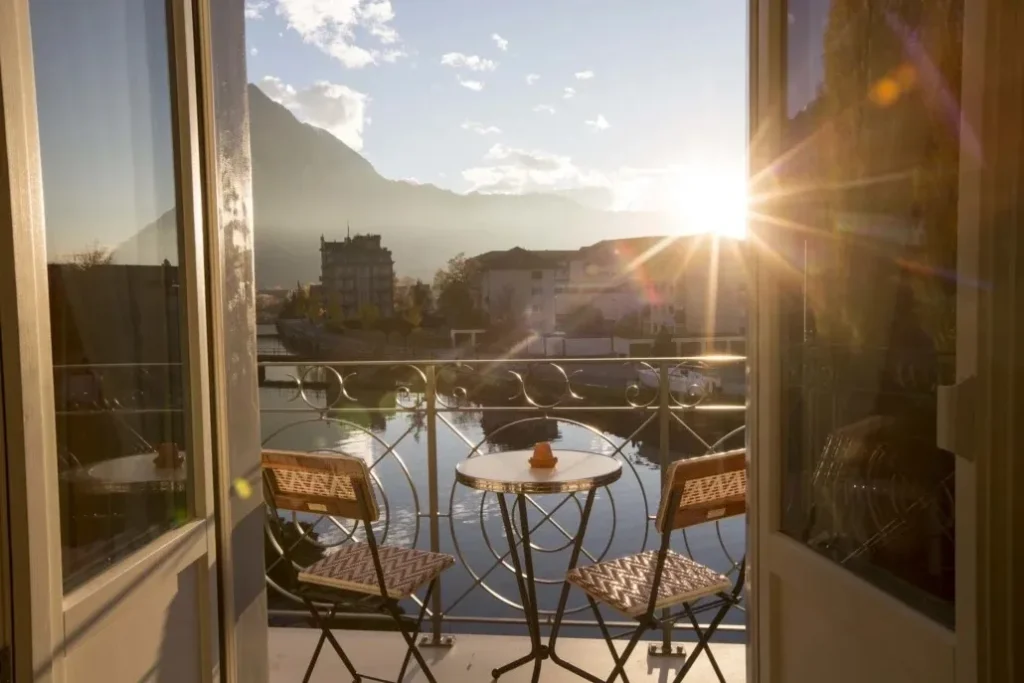 The Boutique Hotel Bellevue Interlaken, is a charming and intimate hotel offering a blend of modern comfort and classic Swiss elegance. Located just a short walk from Interlaken’s town centre , the hotel is set in a picturesque location with stunning views of the surrounding mountains and the serene Lake Thun.
