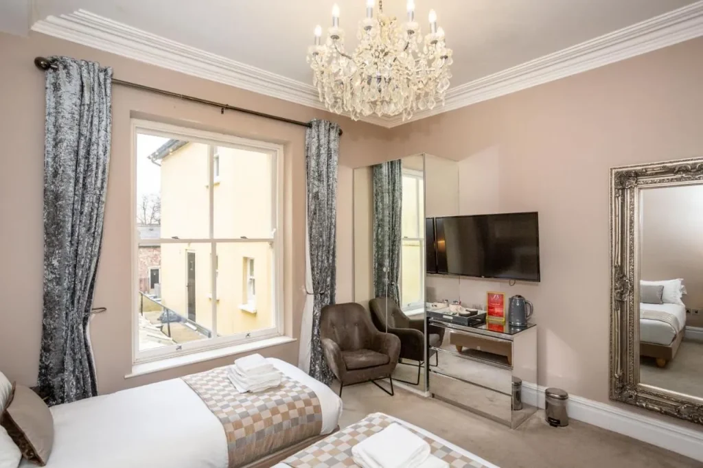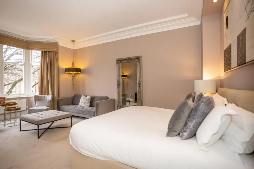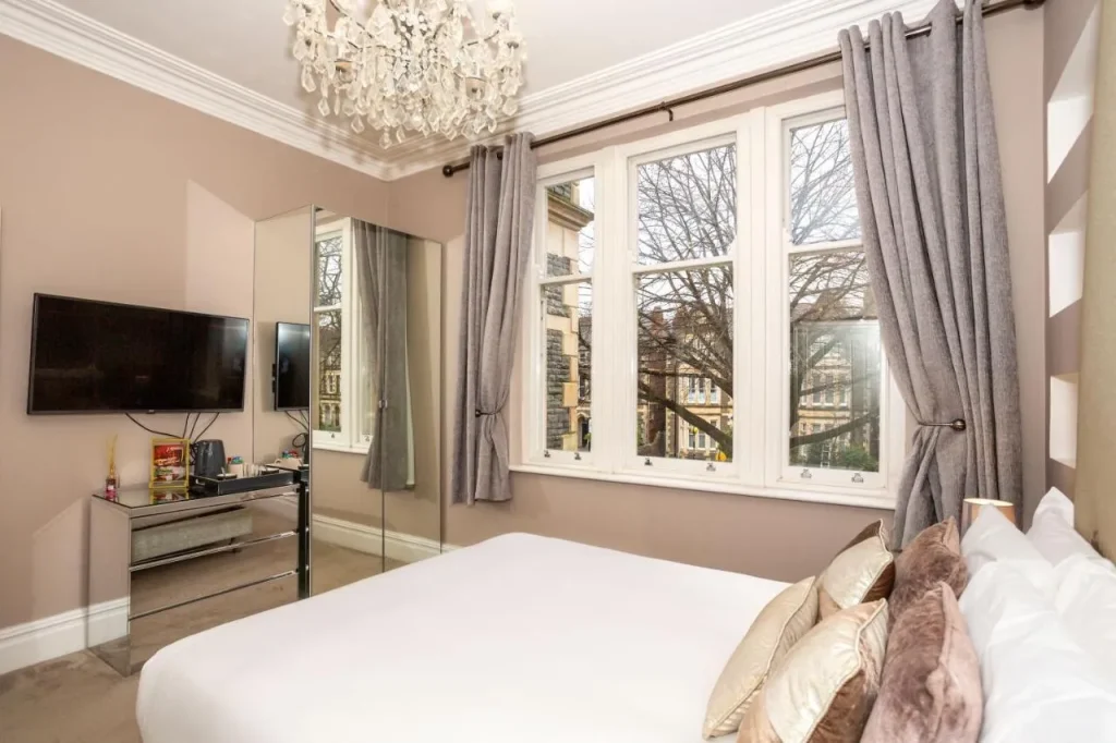 The building was completely restored from top to bottom, with great care in retaining those fabulous Victorian features that give Cardiff Distillery such grace. There’s oodles of glamour (not to mention luxury) in the way the rooms have been decorated and furnished. The boutique property features 8 rooms within the main building, including 1- and 2-bedroom apartments, as well as a 2-bedroom coach house located at the end of the garden. Each room is equipped with amenities such as comfortable beds, fast Wi-Fi, smart TVs, and in-room dining options. On the ground floor, guests will find a coffee shop, restaurant, and bar area, along with a secret garden featuring outdoor seating.