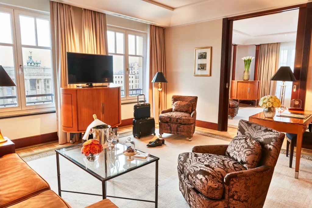 Situated in Pariser Platz Square, Hotel Adlon Hotel Adlon Kempinski Berlin is a luxurious 5-star hotel located directly opposite the Brandenburg Gate in the heart of Berlin’s Mitte district. The original Hotel Adlon opened in 1907 and became renowned for its elegance and hospitality.