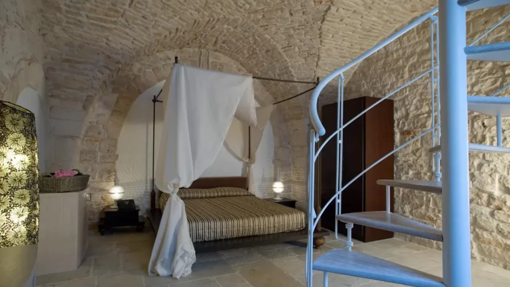 Situated in the main square of Alberobello, Le Alcove blends history and modernity, creating a unique haven for those seeking both relaxation and cultural immersion. The origins of the resort date back to the 16th century, when the small fiefdom of Silva Arboris Belli began to develop. The transformation of these historic structures into a luxury retreat has been masterfully executed through meticulous restoration work carried out by expert stone masters. The resort’s nine trullo residences are a true testament to the region’s craftsmanship and heritage, each showcasing the distinctive architectural style of the trulli while integrating modern amenities to provide the highest level of comfort. Inside, the rooms are an exquisite balance of traditional charm and contemporary elegance, with natural stone walls, exposed beams, and stylish decor that respect the integrity of the building’s history while offering guests a sophisticated, comfortable environment. The design harmonises the rustic beauty of the trulli with luxury furnishings and modern conveniences, ensuring a memorable and indulgent stay. Le Alcove is a serene and intimate escape that perfectly captures the essence of Puglia’s heritage, while offering you the perfect base to explore the surrounding countryside and the unique charm of Alberobello, renowned for its picturesque trulli and captivating landscapes.
