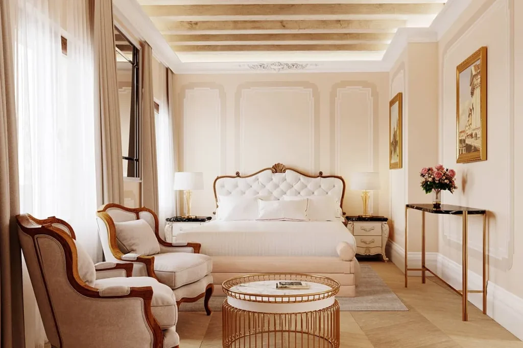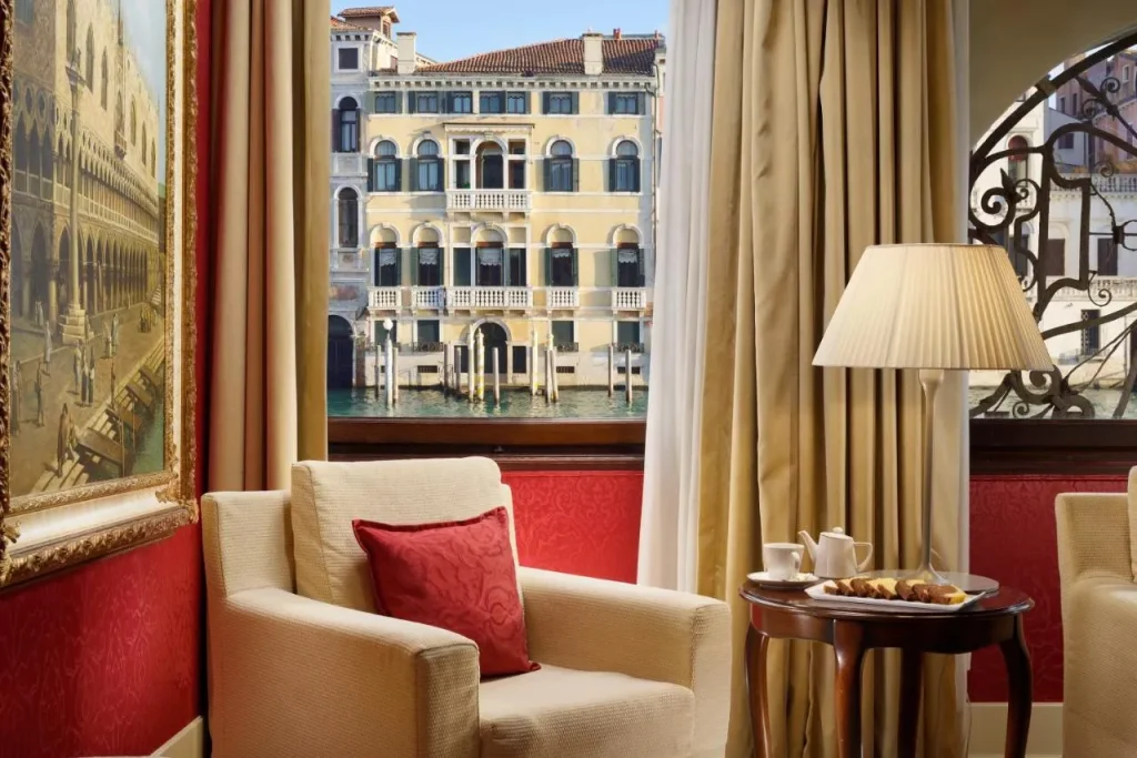 Located in the heart of the historic centre, the quieter side of Venice, the elegant 16th-century palace overlooking the Grand Canal offers an elegant and romantic experience. The hotel’s interior features original ceilings with exposed beams and wall rosettes frescoed with mythological figures by Giovanni Battista Zelotti. Elegantly appointed rooms and suites are adorned with original paintings and classic Venetian décor, and in-room amenities include air conditioning, flat-screen satellite TV and complimentary Wi-Fi. The hotel provides a range of services, including room service, 24-hour front desk, and a private mooring on the Grand Canal, allowing for convenient water transport access.
