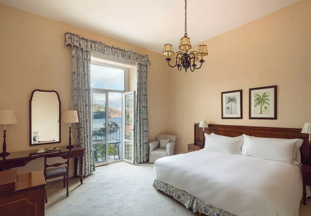 The hotel boasts 128 rooms and 35 suites, each offering stunning sea views and elegantly designed interiors. Indulge in a variety of dining experiences, from the Michelin-starred William Restaurant to the Italian-inspired Ristorante Villa Cipriani. Afternoon tea on the terrace remains a cherished tradition, providing a serene setting with panoramic ocean vistas. Set within 10 acres of subtropical gardens, Reid’s Palace offers an array of amenities, including three swimming pools, an oceanfront spa, and direct sea access. The hotel’s central location allows easy exploration of Funchal’s vibrant city centre, just a short walk or drive away.