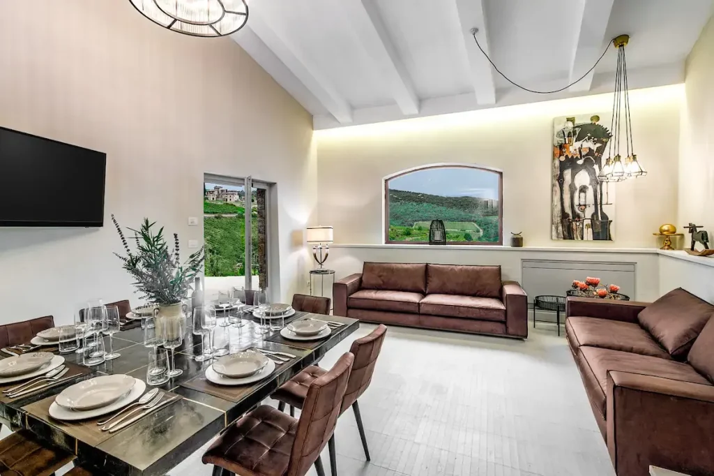 Villa Ulvieto is a beautifully renovated farmhouse that masterfully fuses old-world charm with modern sophistication. Its traditional stone façade and rustic wooden beams evoke the essence of Tuscany’s timeless beauty, while the stylish interiors feature sleek, contemporary finishes, creating a harmonious balance between past and present.