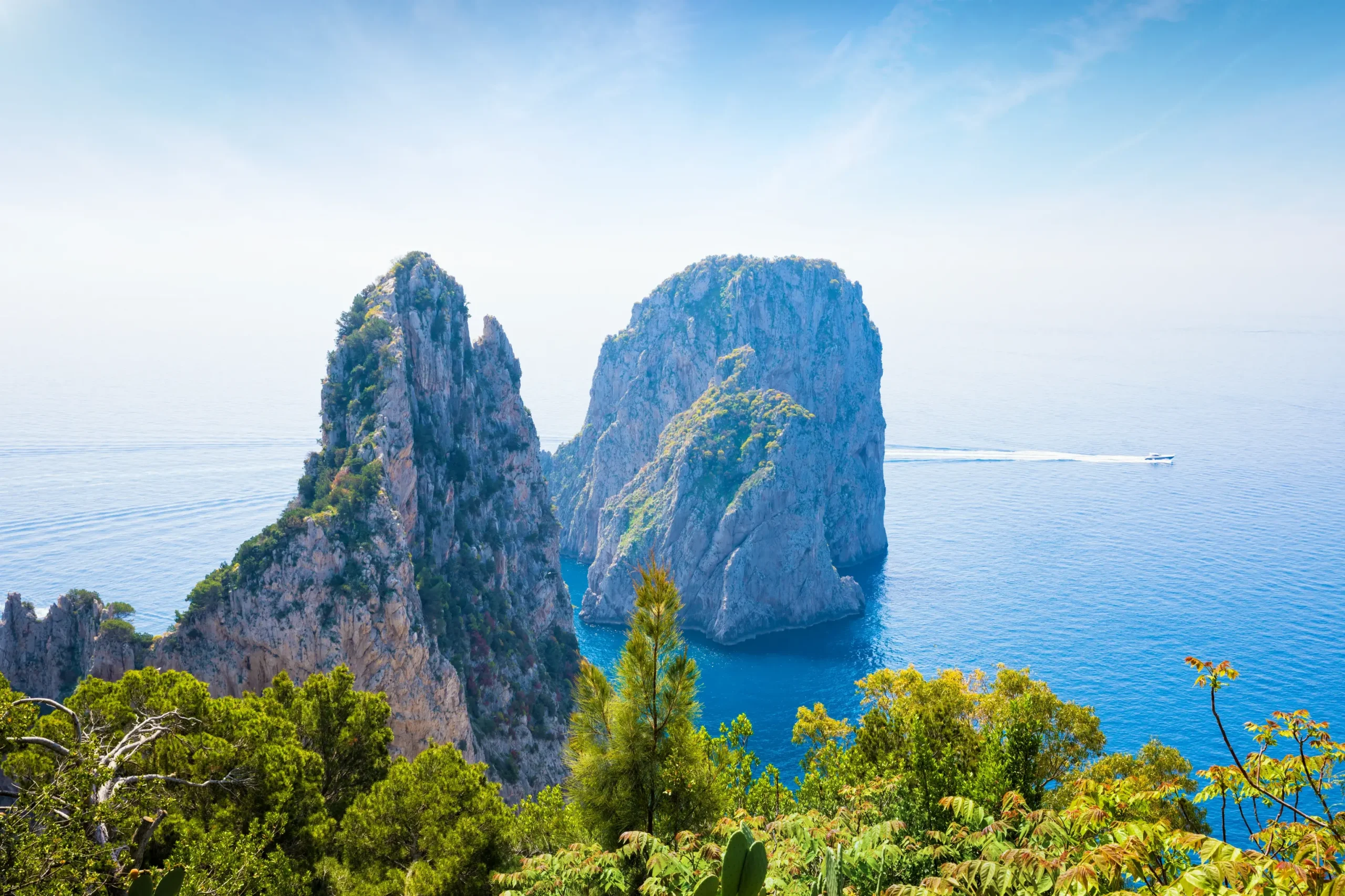 Iconic sea stacks off Capri’s southern coast, best seen by boat or from scenic lookouts like Punta Tragara