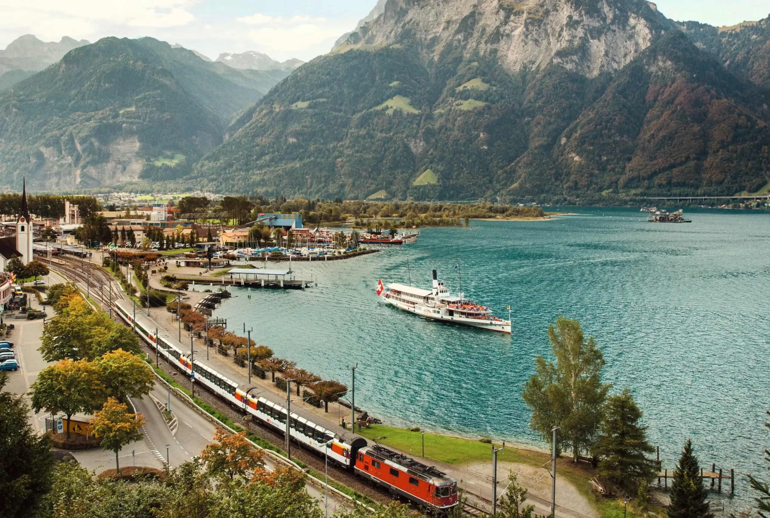 Scenic train and boat service between Lucerne and Lugano