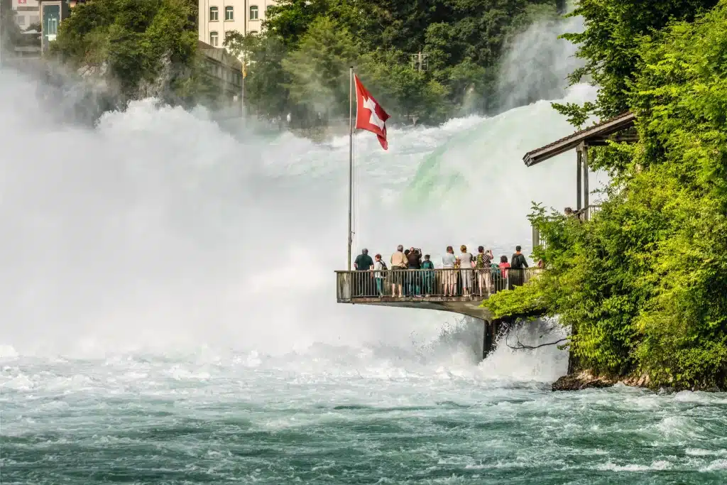 The Rhine Falls in Switzerland are Europe’s largest waterfalls, offering powerful views, boat experiences, and dramatic natural scenery.