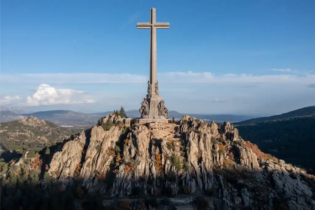The Valle de los Caídos is a monumental Spanish Civil War memorial with a striking basilica and 150-meter cross.