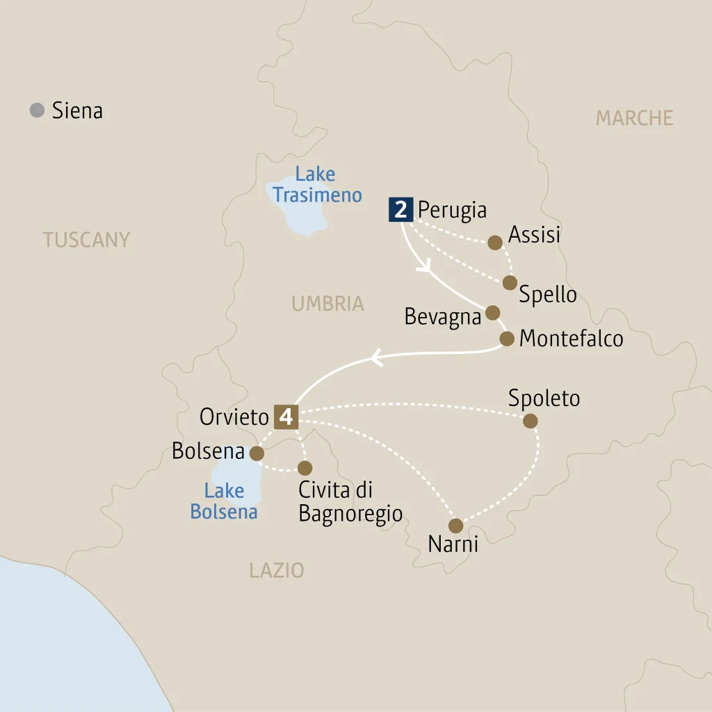 - Private guided walking tours in Perugia, Assisi, Bevagna, Orvieto and Narn